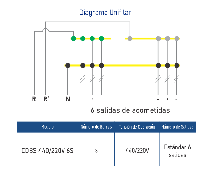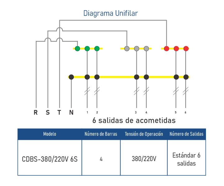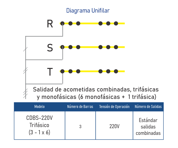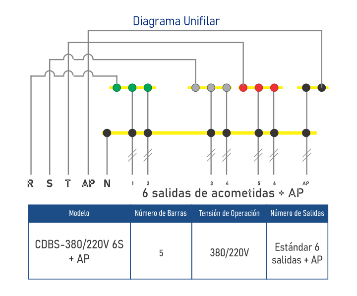 • 6 salidas de acometidas + 1 AP• Barras Selladas con Proteccion IP 67