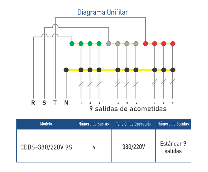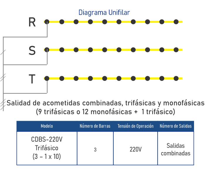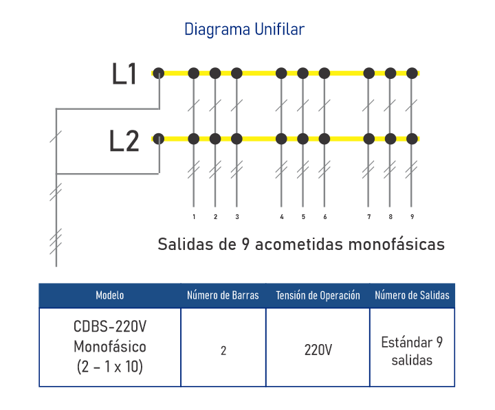 • 9 salidas de acometidas monofásicas• Barras Selladas con Proteccion IP 67