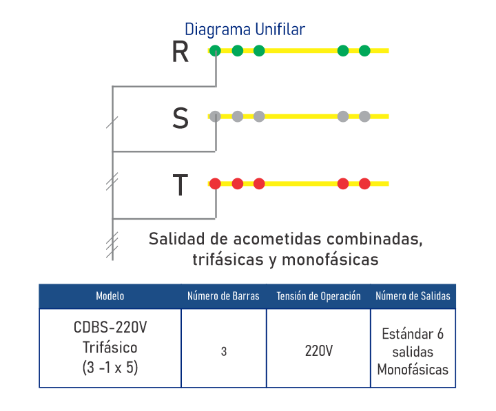 • Salidas de acometidas combinadas trifásicas y monofásicas • Barras Selladas con Proteccion IP 67