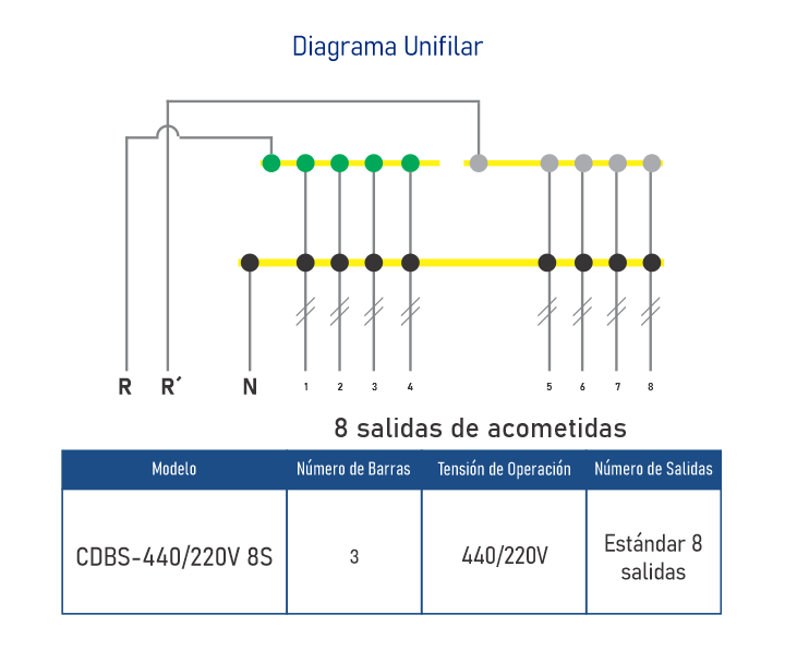 • 8 salidas de acometidas• Barras Selladas con Proteccion IP 67