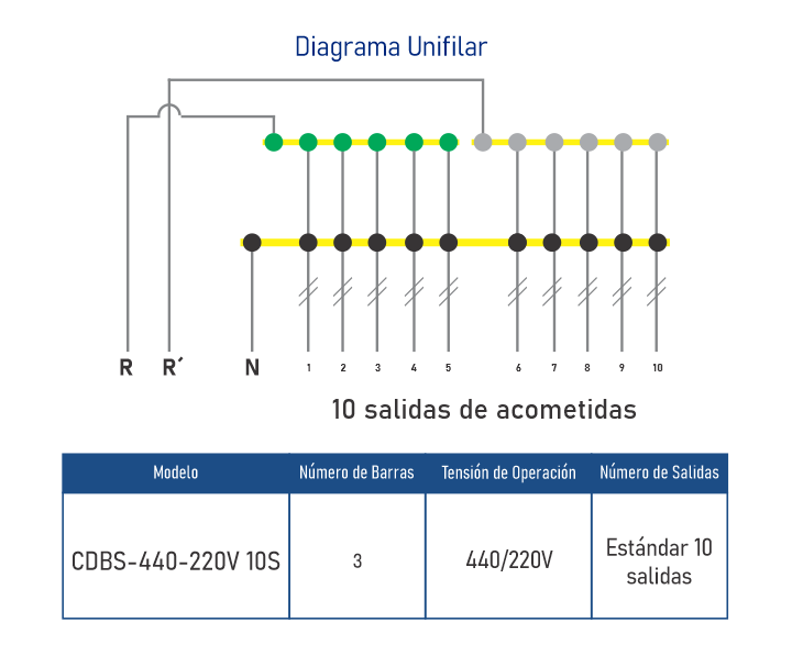 • 10 salidas de acometidas• Barras Selladas con Proteccion IP 67