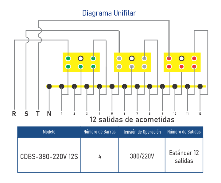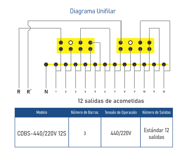 • 12 salidas de acometidas• Barras Selladas con Proteccion IP 67