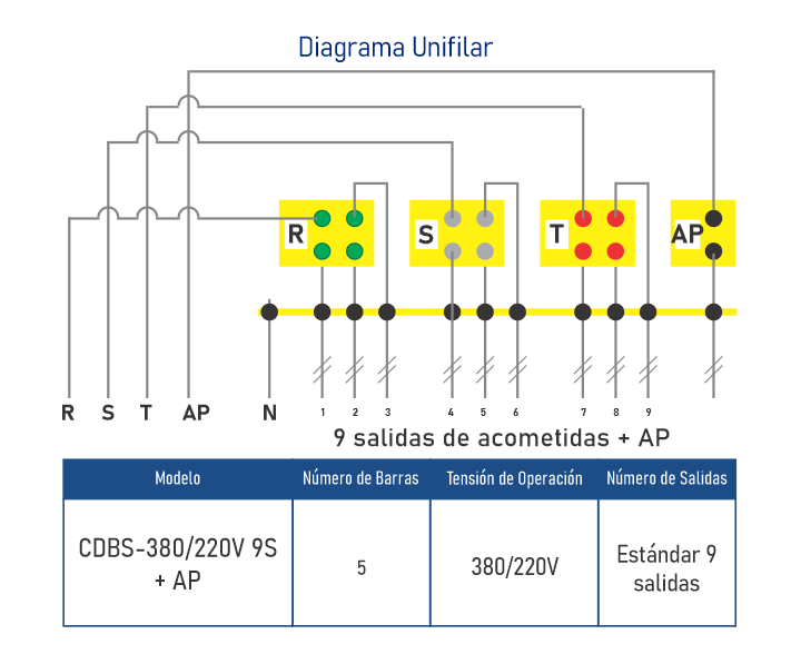 • 9 salidas de acometidas + 1 AP• Barras Selladas con Proteccion IP 67